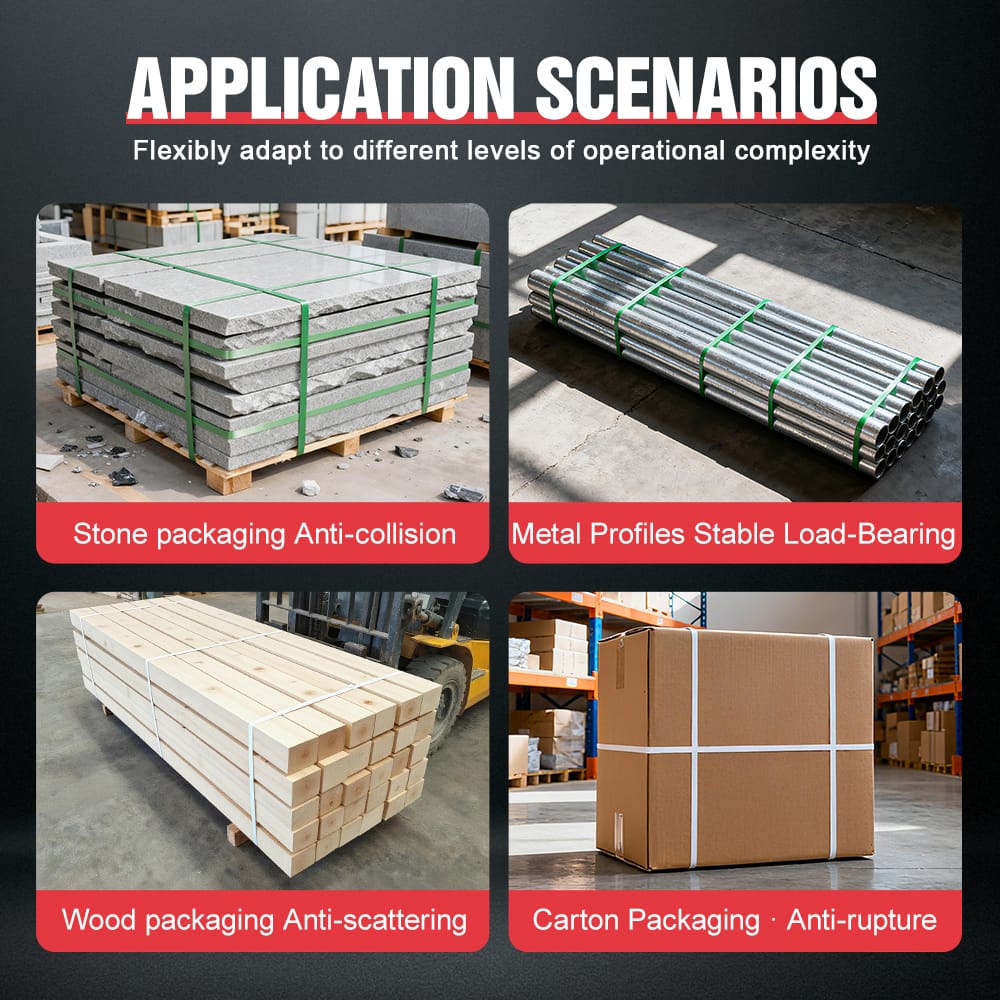 Large tightening force and special structure design make it easy to tighten and package heavy items like steel and aluminum ingots.